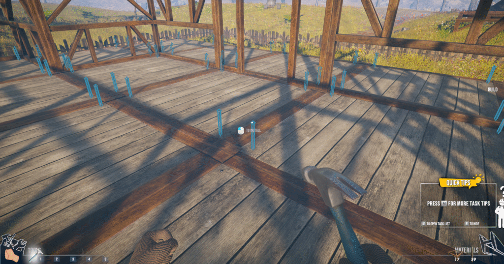 Sur PlayStation 5, House Builder profite pleinement des retours haptiques de la DualSense :