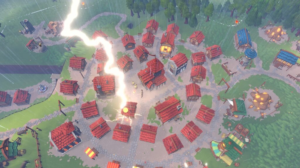 Visuellement, Becastled séduit par son style low-poly coloré, à mi-chemin entre la légèreté d’un jeu “cozy” et la tension d’un RTS. Chaque saison modifie subtilement le gameplay : les rivières gèlent en hiver, les champs s’assèchent en été, et la pluie peut détruire tes récoltes. Cette dynamique rend chaque partie unique et pousse à l’anticipation constante.