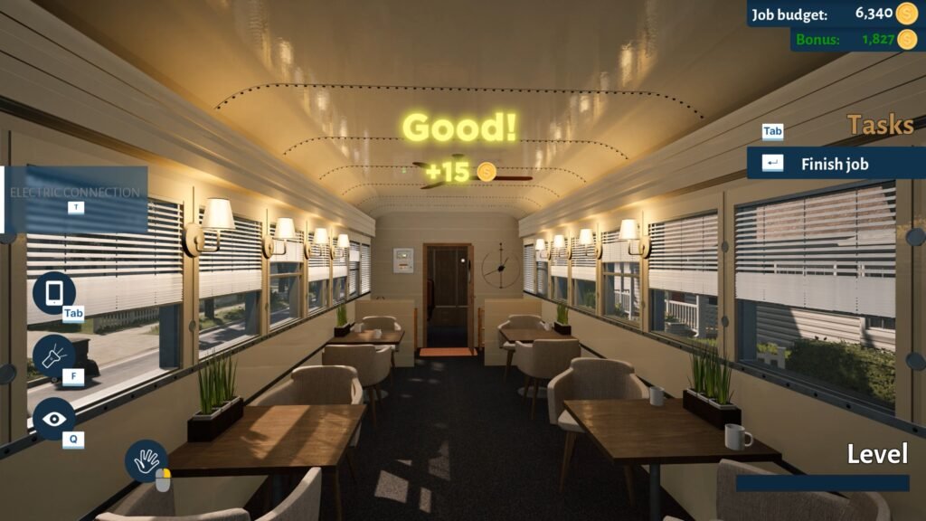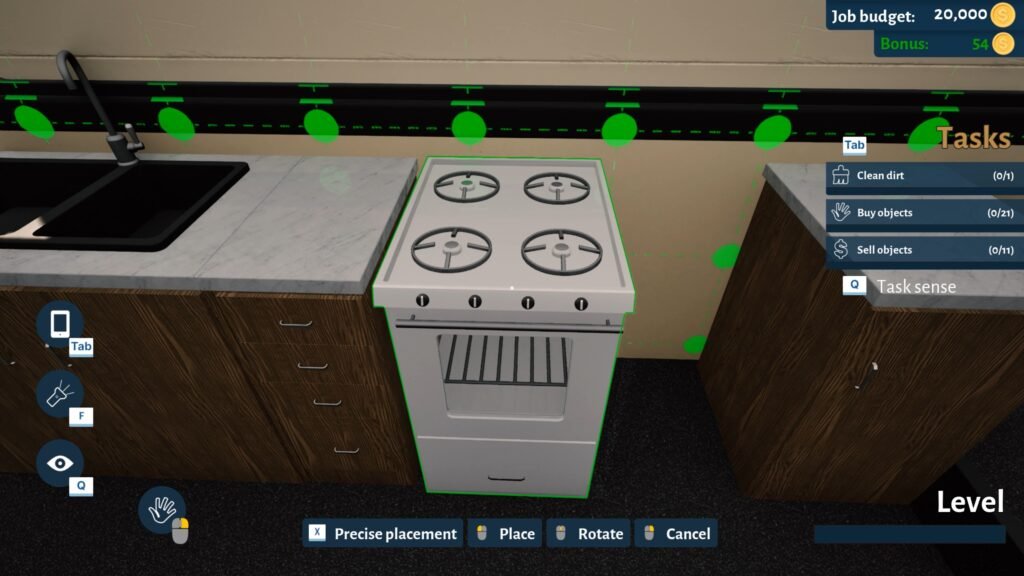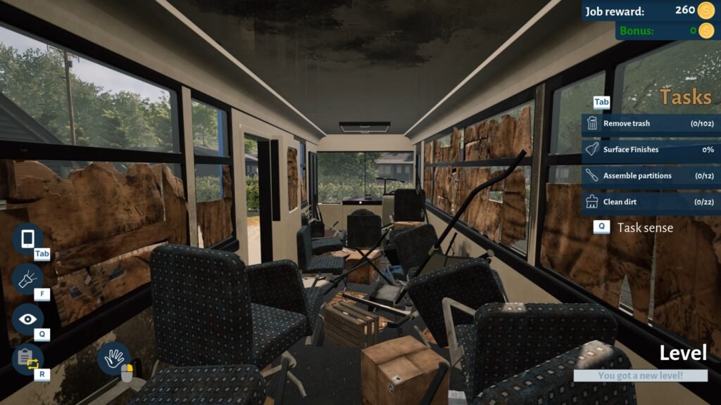 Le gameplay progresse intelligemment, démarrant par des tâches simples comme le nettoyage ou la collecte de déchets, pour ensuite introduire des mécaniques plus techniques telles que la pose de carrelage, la construction de cloisons, ou encore le raccordement électrique.