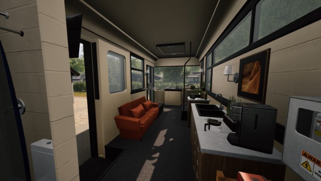 Ce qui saute immédiatement aux yeux dans Bus Flipper Simulator, c’est la variété des environnements proposés : entre un van à la Breaking Bad, un café roulant ou un petit chez-soi cosy, chaque bus a sa propre personnalité et invite à une rénovation différente.